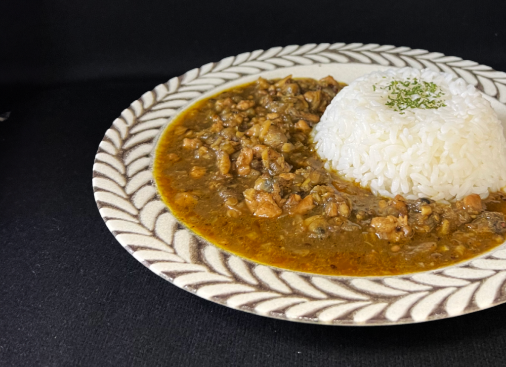 11種類のスパイスと和だしにこだわったスパイスカレーです。 ご自宅では作ることが難しいスパイスをふんだんに使用し、化学調味料・着色料・甘味料・香料・小麦粉を製造工程で使わず、お子様にも安心して食べていただけます。 種類豊富なスパイスの力で健康効果や免疫力向上にも期待ができるうえ、和だしの旨味と栄養が加わることで、より心とカラダにうれしい健康志向のカレーとなっております。 鰹・昆布・椎茸の異なる旨味がつまった出汁に、 鶏ひき肉やアサリなどを加えて煮込んでいきます。そこにスパイスが加わることで美味しさに彩りが増し、新鮮だけどどこか懐かしい、食べ疲れしないような仕上げにこだわりました。